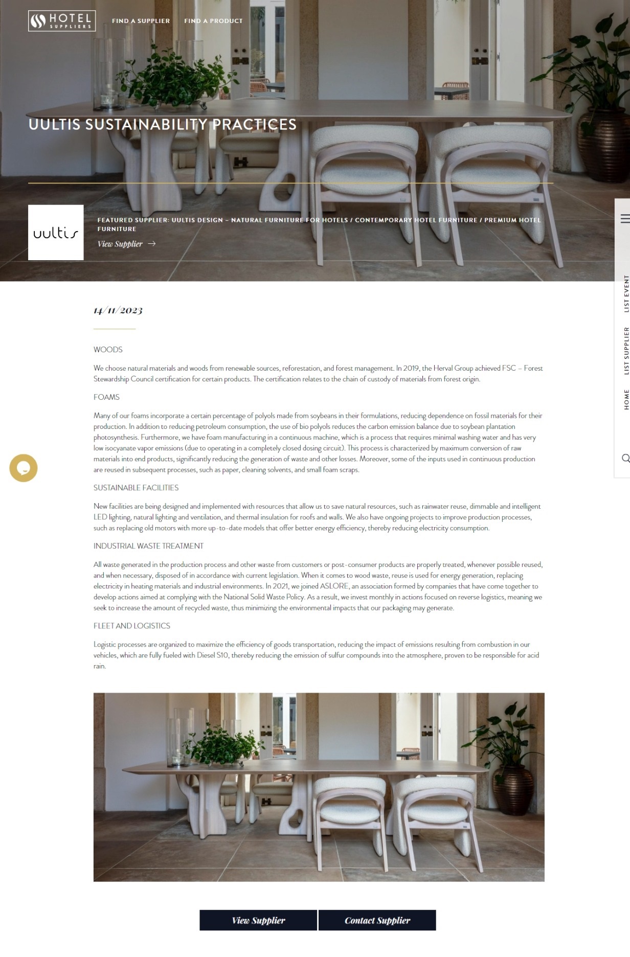 Uultis and its sustainable practices have gained prominence in an article published on the Hotel Suppliers website. Check out the full article here!
